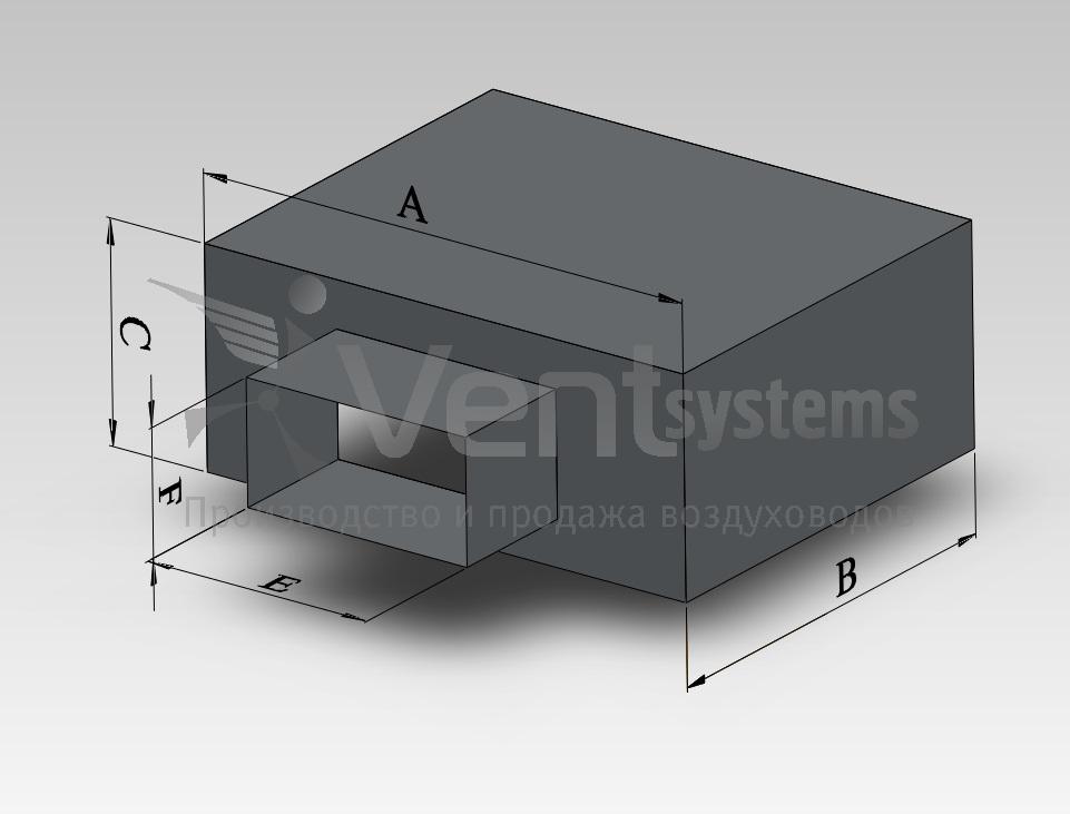 Пленум - воздухозаборное устройство, применяемое для смешивания свежего наружного воздуха с уже циркулирующими в системе потоками. У данного пленума прямоугольная врезка расположена сбоку короба.
