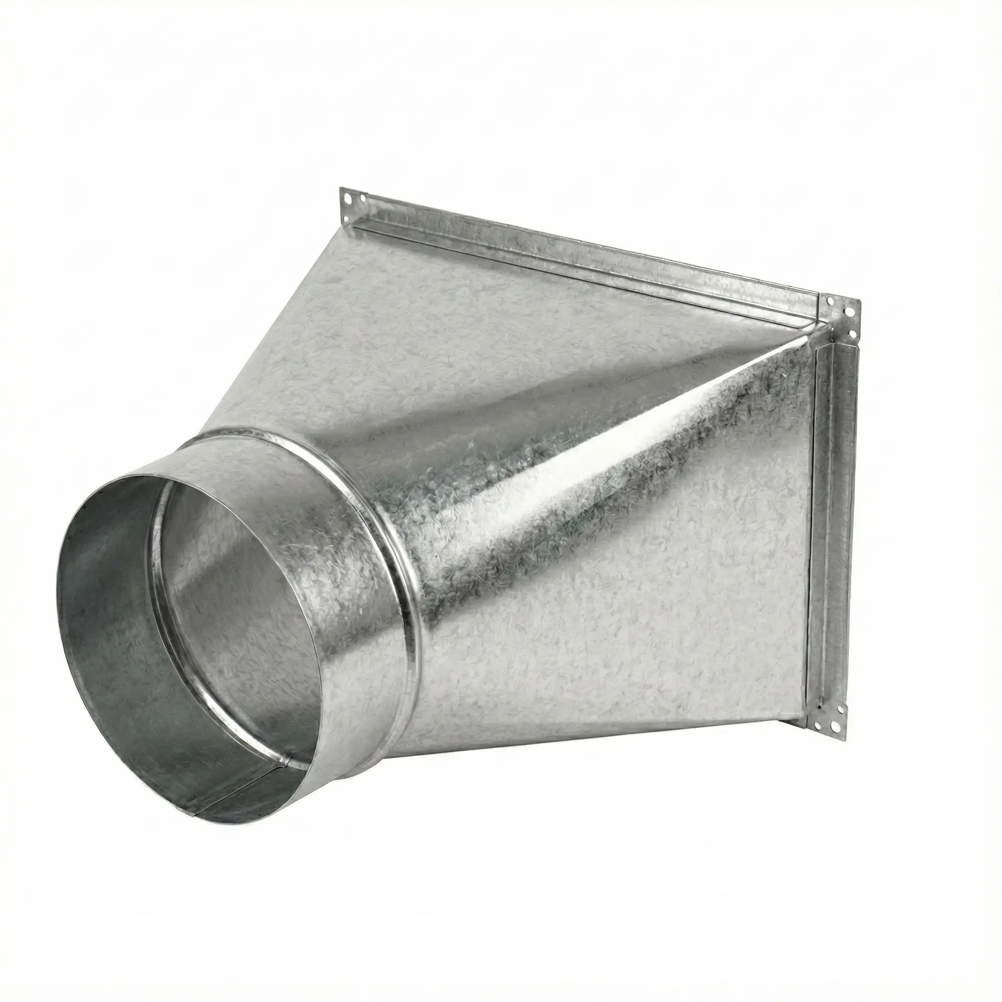 Переход прямоугольное сечение на круглое применяется для соединения воздуховодов различной формы в системах вентиляции и кондиционирования. Изделие обеспечивает герметичную стыковку прямоугольного канала с круглым воздуховодом без утечек воздуха и с сохранением проектной конфигурации сети.